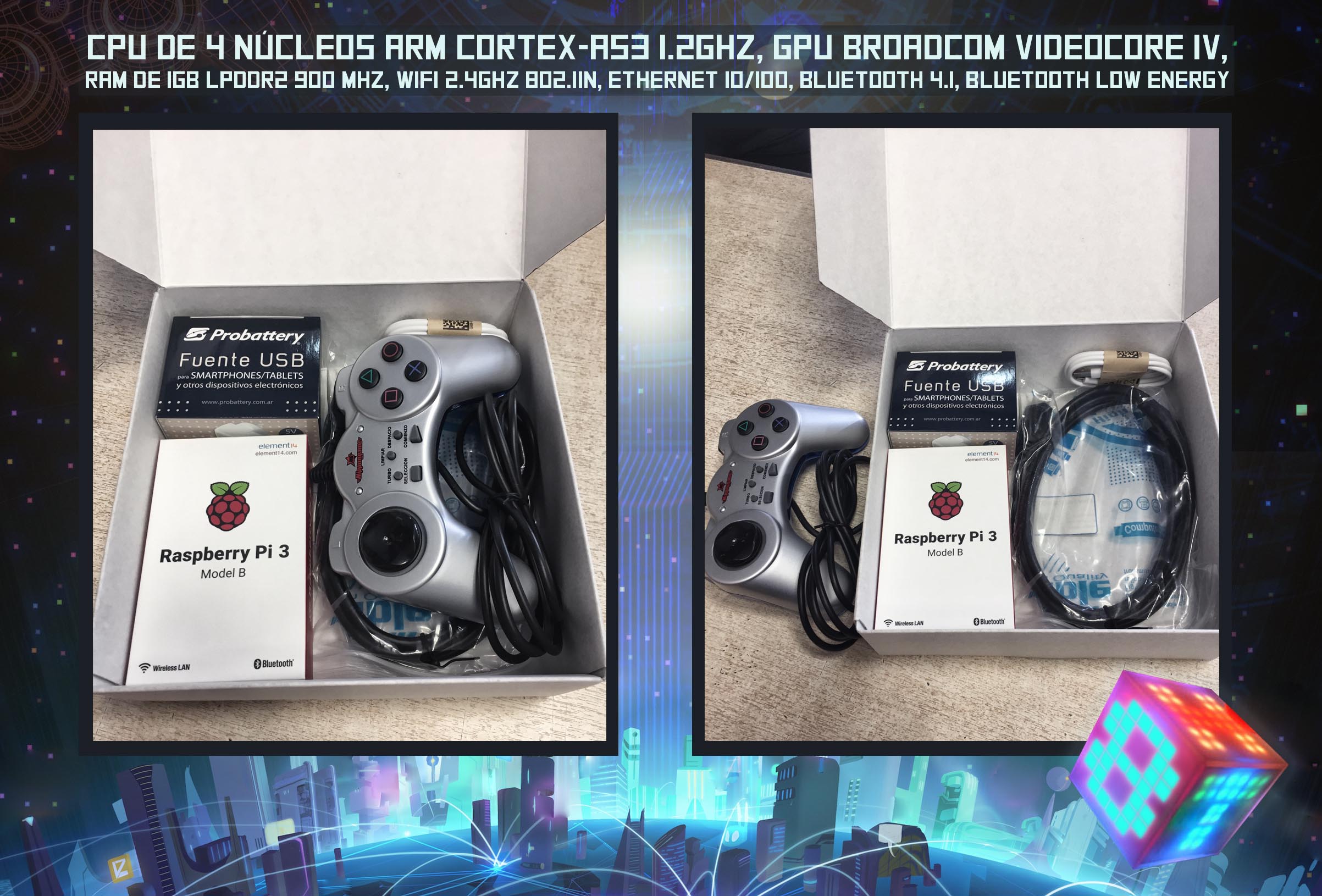 8TBox Mini cuenta en su interior con una Raspberry Pi 3 de 4 núcleos ARM 1.2GHz con Bluetooth, WIFI, LAN y cuatro puertos USB, y para que puedas conectar cualquier Joystick o Gamepad, incluso teclado y mouse, lo que sea que necesites para jugar.